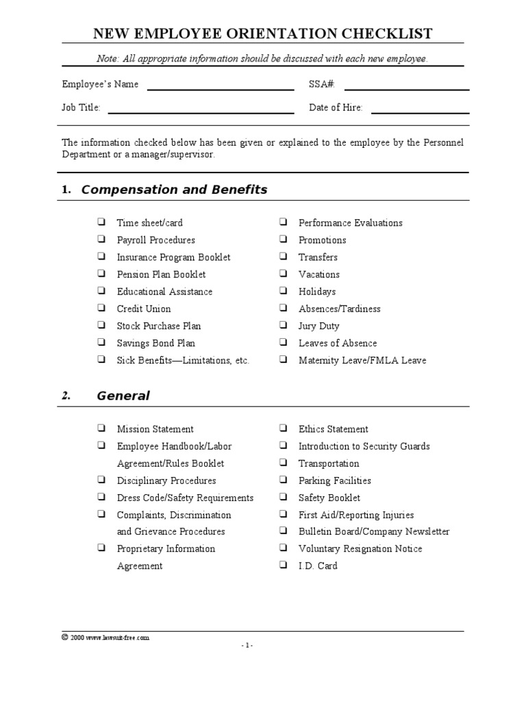 HR will meet with the brand new hire orientation as per the checklist at the start of his or her first day of labor to finish new-hire paperwork, put together key and ID playing cards, and review advantages information.