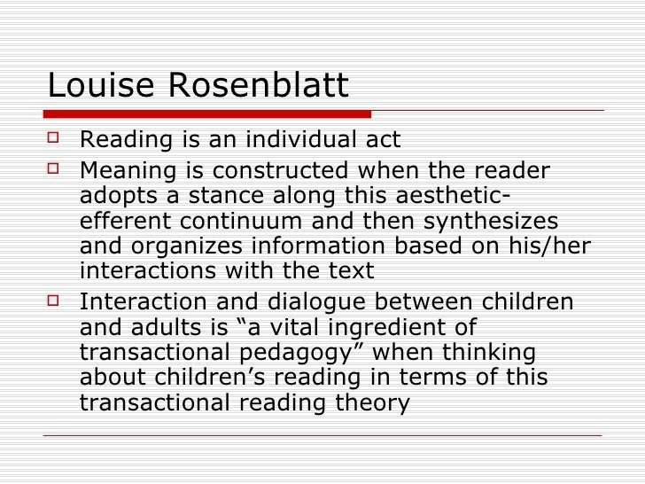 The teacher applying the theory of transaction does not match any literary experience with the source from which it originates. Rosenlab argues for a rethinking of the terms, which is inaccurate in speaking of writing as “poetry” (which would serve as a general term for any literary work). The text paper is simple ink until the reader comes along. “Poetry,” on the other hand, is when the reader is brought into the mind of the reader and begins the symbolic, stimulating work on word transactions, images, emotions, and ideas.